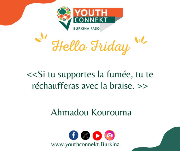 "Si tu supportes la fumée, tu te réchaufferas avec la braise." – Ahmadou Kourouma